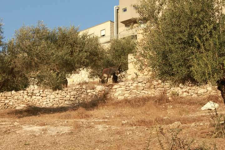We got out of the building and we were greeted by warm sunshine, and an environment that seems to be back in time, with unpaved pathways, animals roving around, and olive trees and the like. In the picture we see children trying to pick olives from the tree.